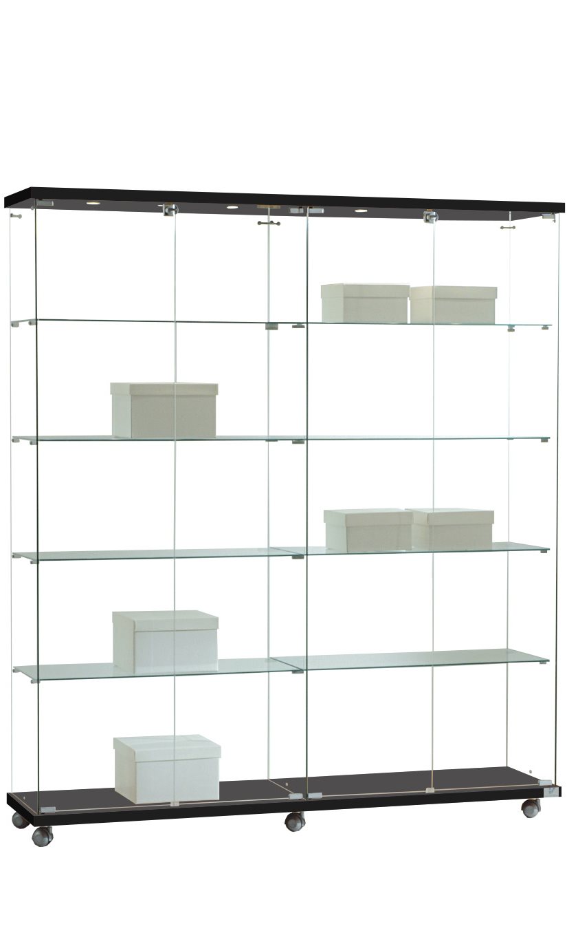 Glasmontres mål er: cm.157x40x181h – 6 spot i top Vægt 155,-kg. colli 3